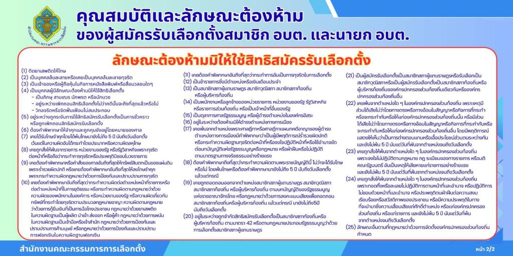 ประชาสัมพันธ์คุณสมบัติและลักษณะต้องห้ามของผู้สมัครรับเลือกตั้งสมาชิกสภาองค์การบริหารส่วนตำบลและนายกองค์การบริหารส่วนตำบล