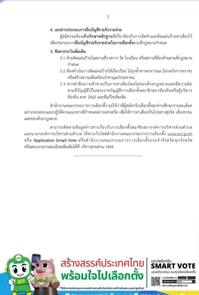 ประชาสัมพันธ์แจ้งแนวทางติดป้ายหาเสียงเลือกตั้ง อบต. ขนาด จำนวน และสถานที่ที่ติดตั้งป้ายหาเ...